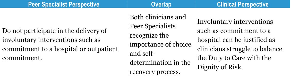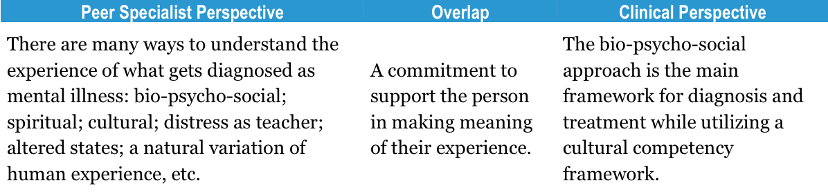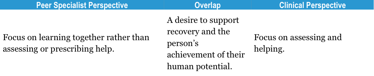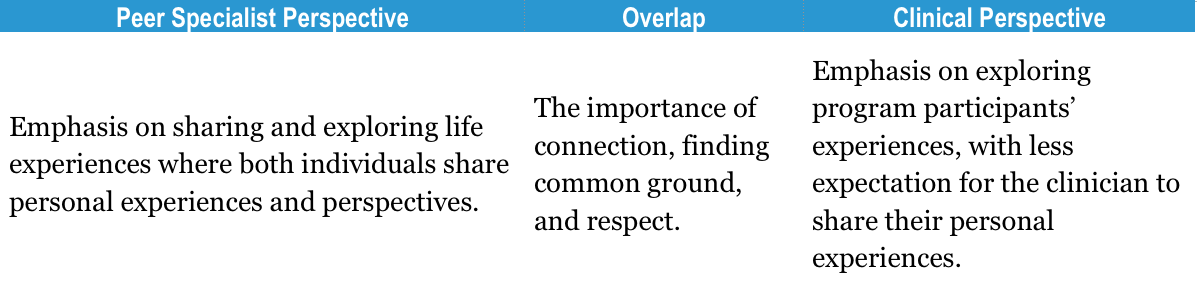 Peer Specialist and Clinical Perspectives